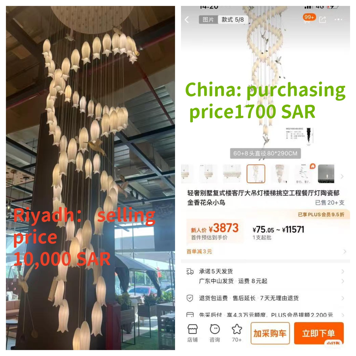 • 极致利润空间: 消除中间商,直连中国产业带工厂。以灯具为例,国内采购价仅为中东零售价的 15%-20%。